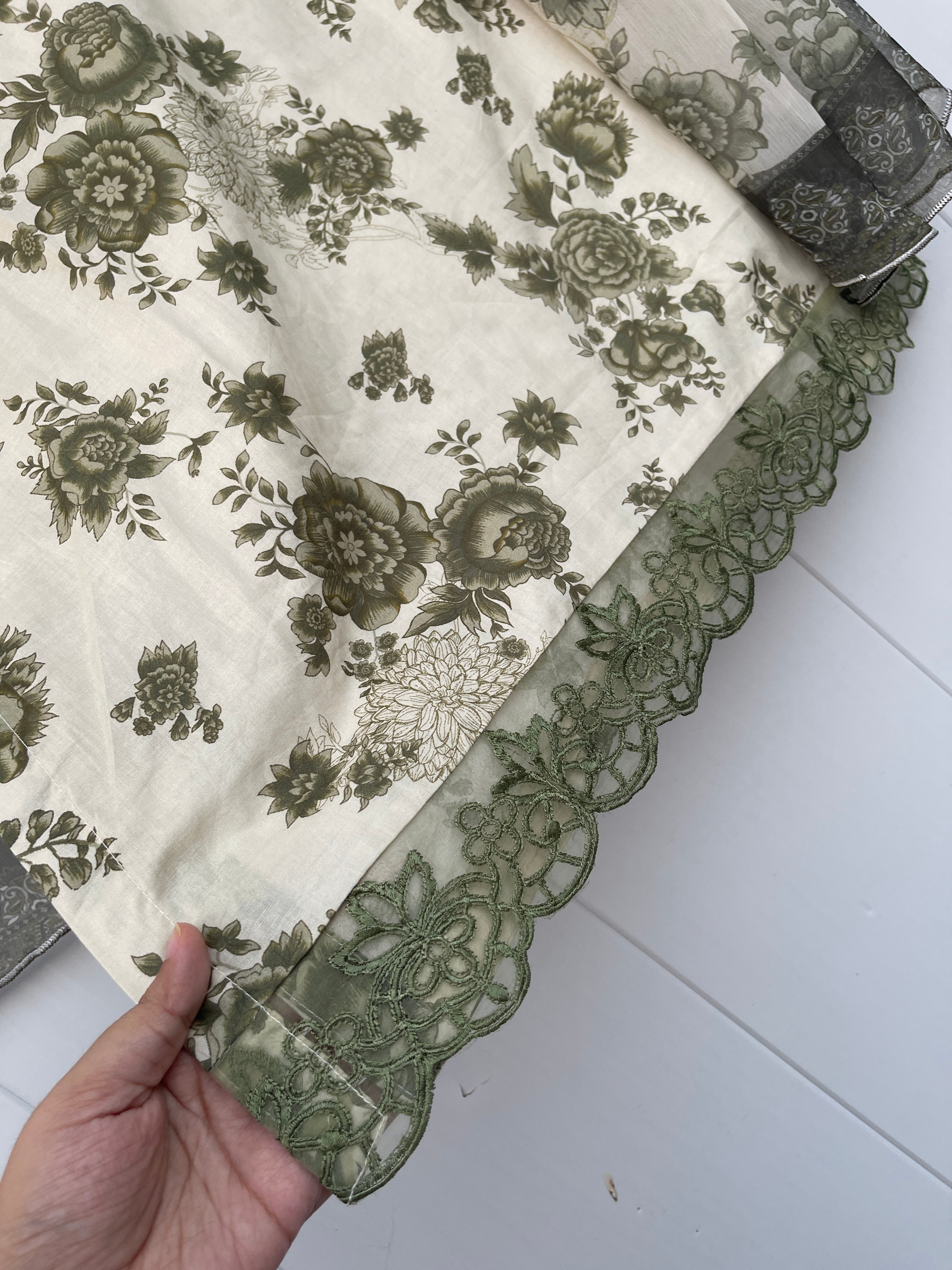 Crafted from branded lawn fabric, BEEHA 3PC LAWN COLLECTION features a 3pc ensemble of a mondar lawn dupatta, shirt with embroidered print and neckline, and tailor-stitched trousers with handcrafted lace details. Enhance your beauty with this 44-45 inch long shirt.