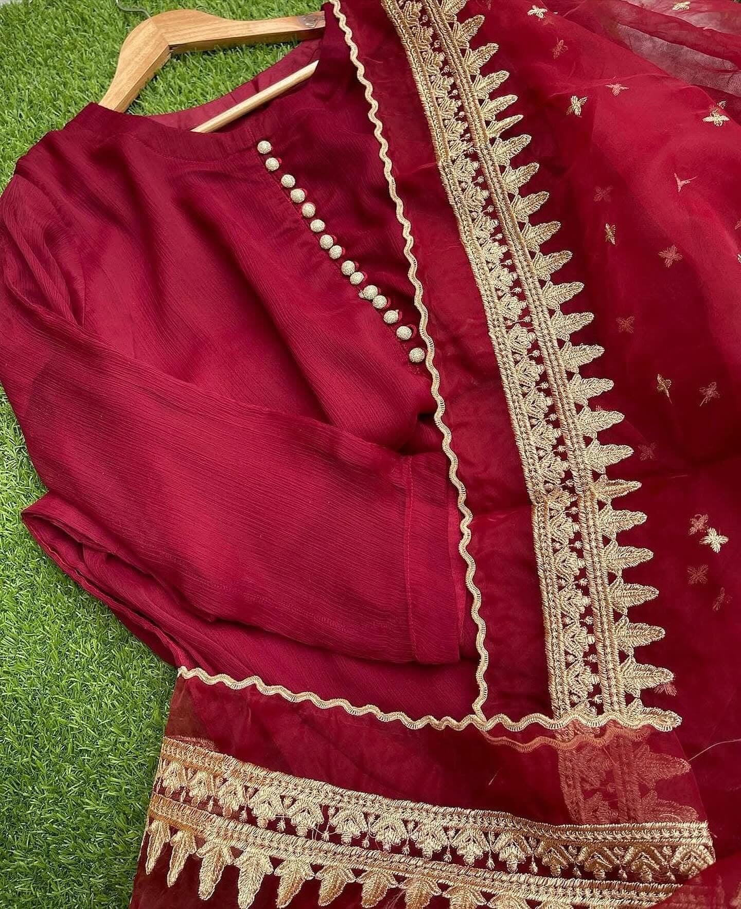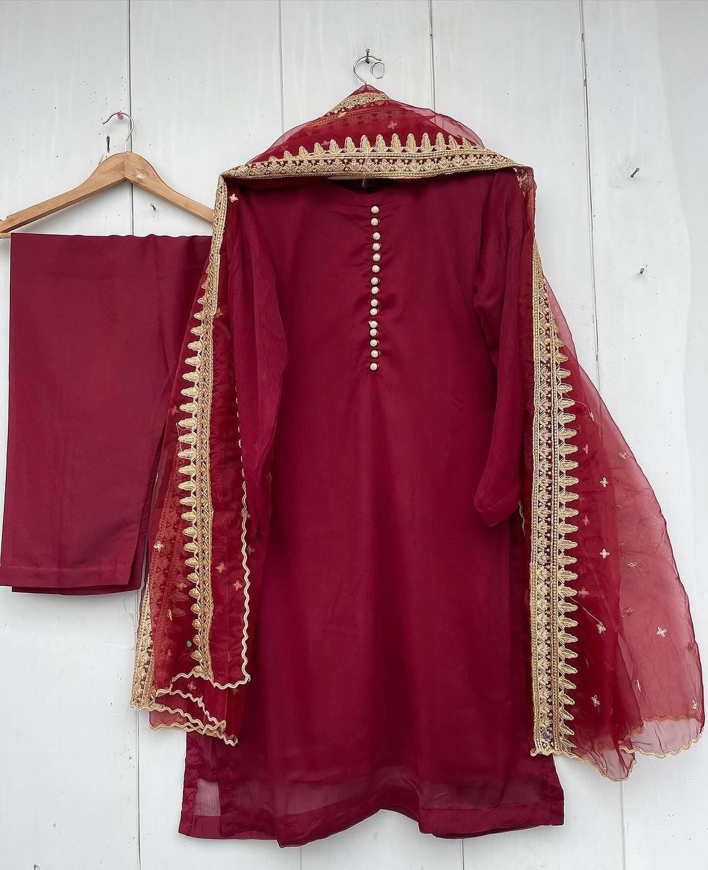 Introducing our Chiffon formal wear collection, featuring a long chiffon shirt with an inner attachment for added comfort. Paired with silk trousers and an embroidered dupatta, this collection exudes elegance and sophistication. Perfect for any formal occasion.