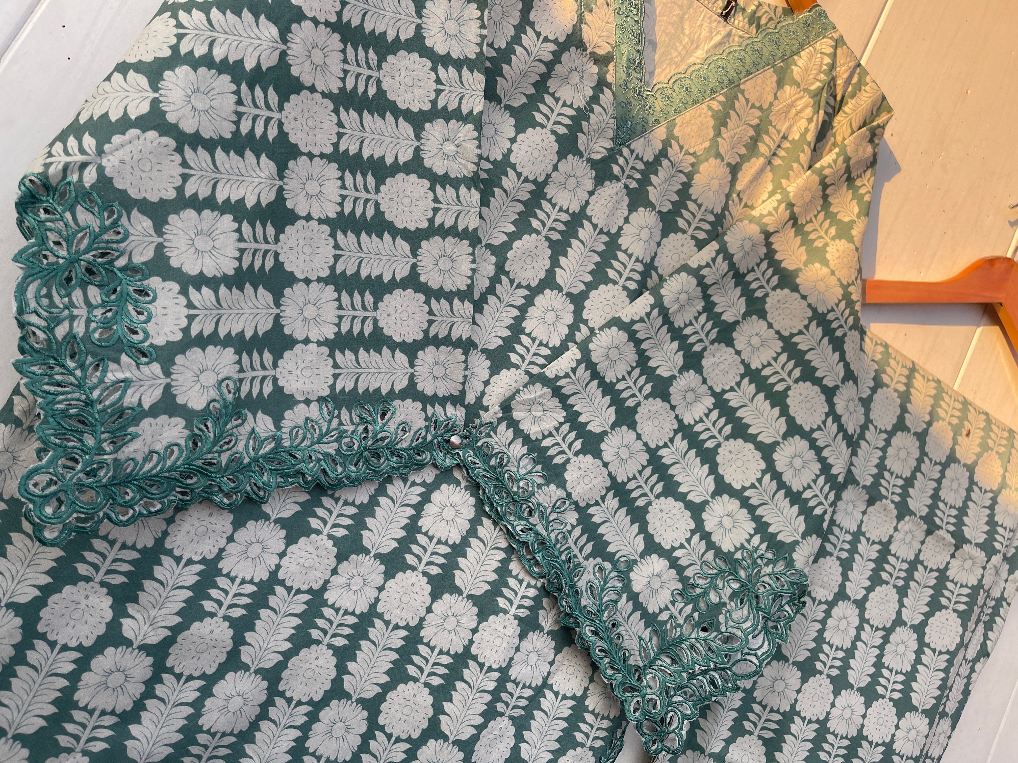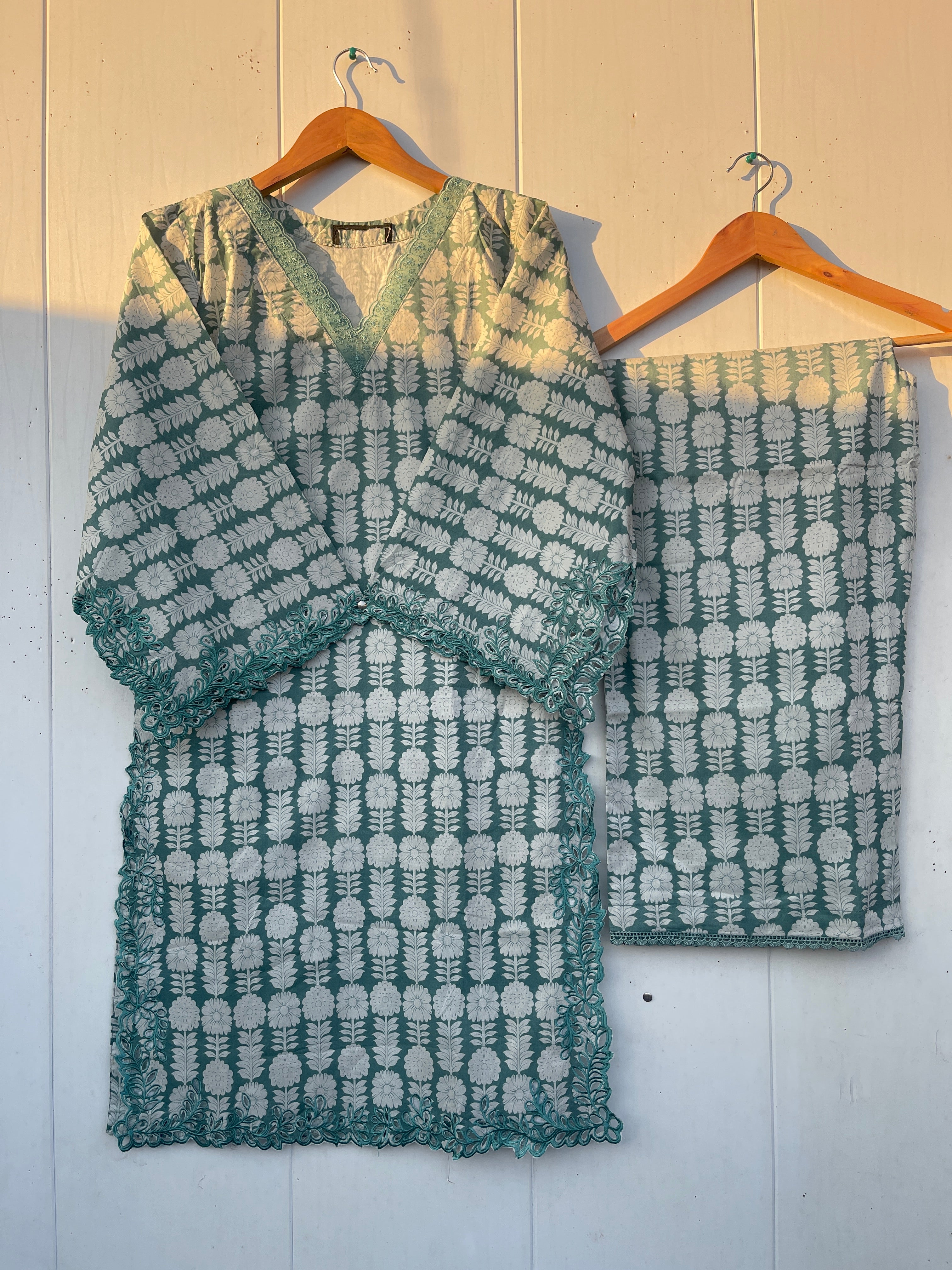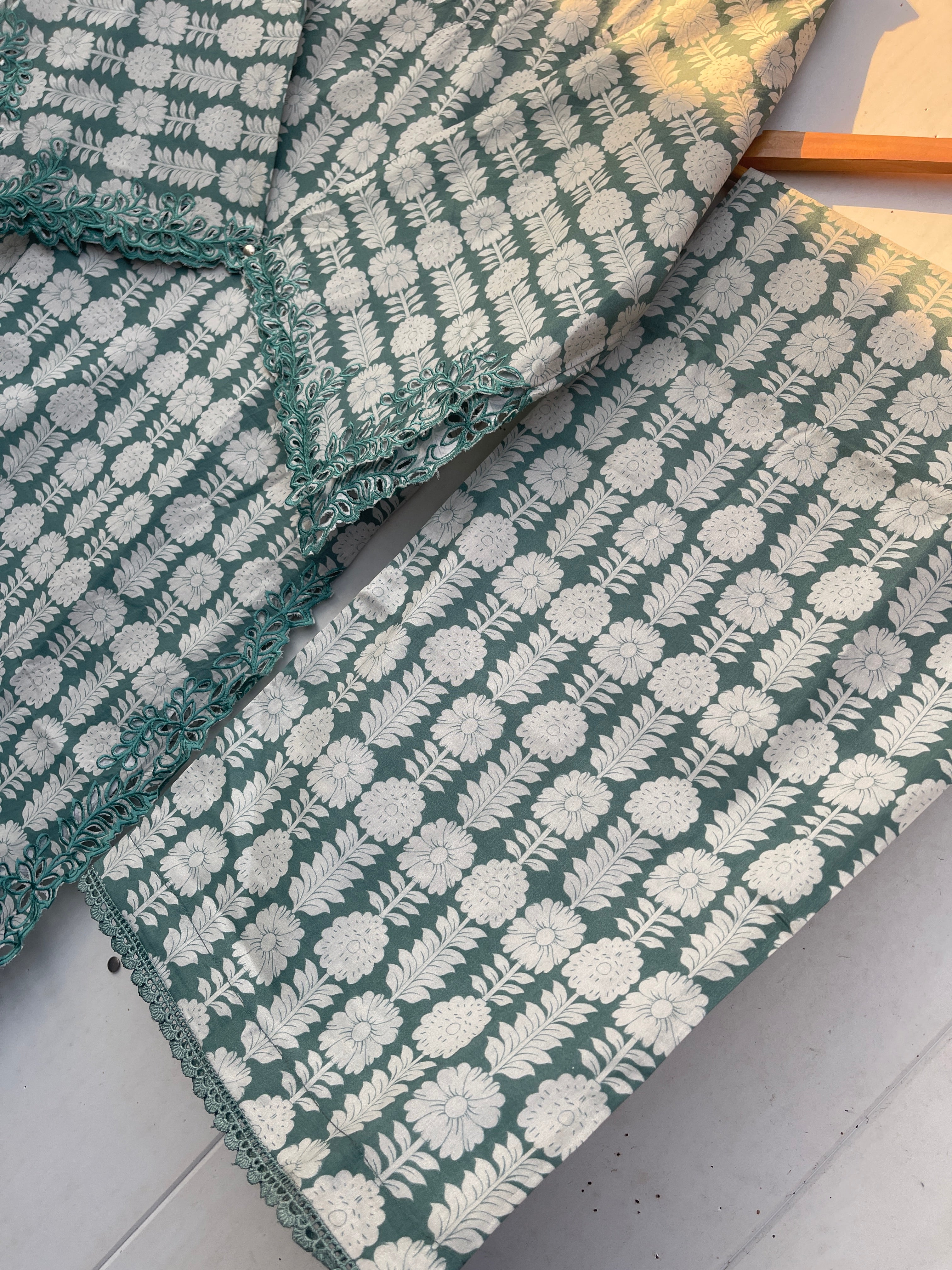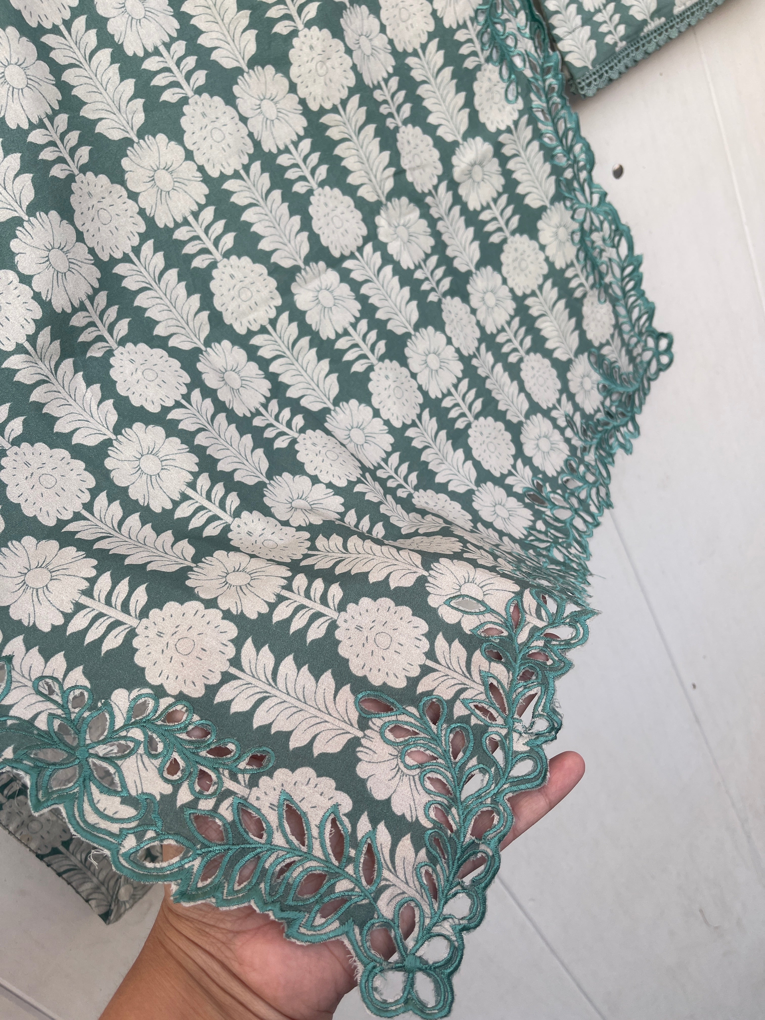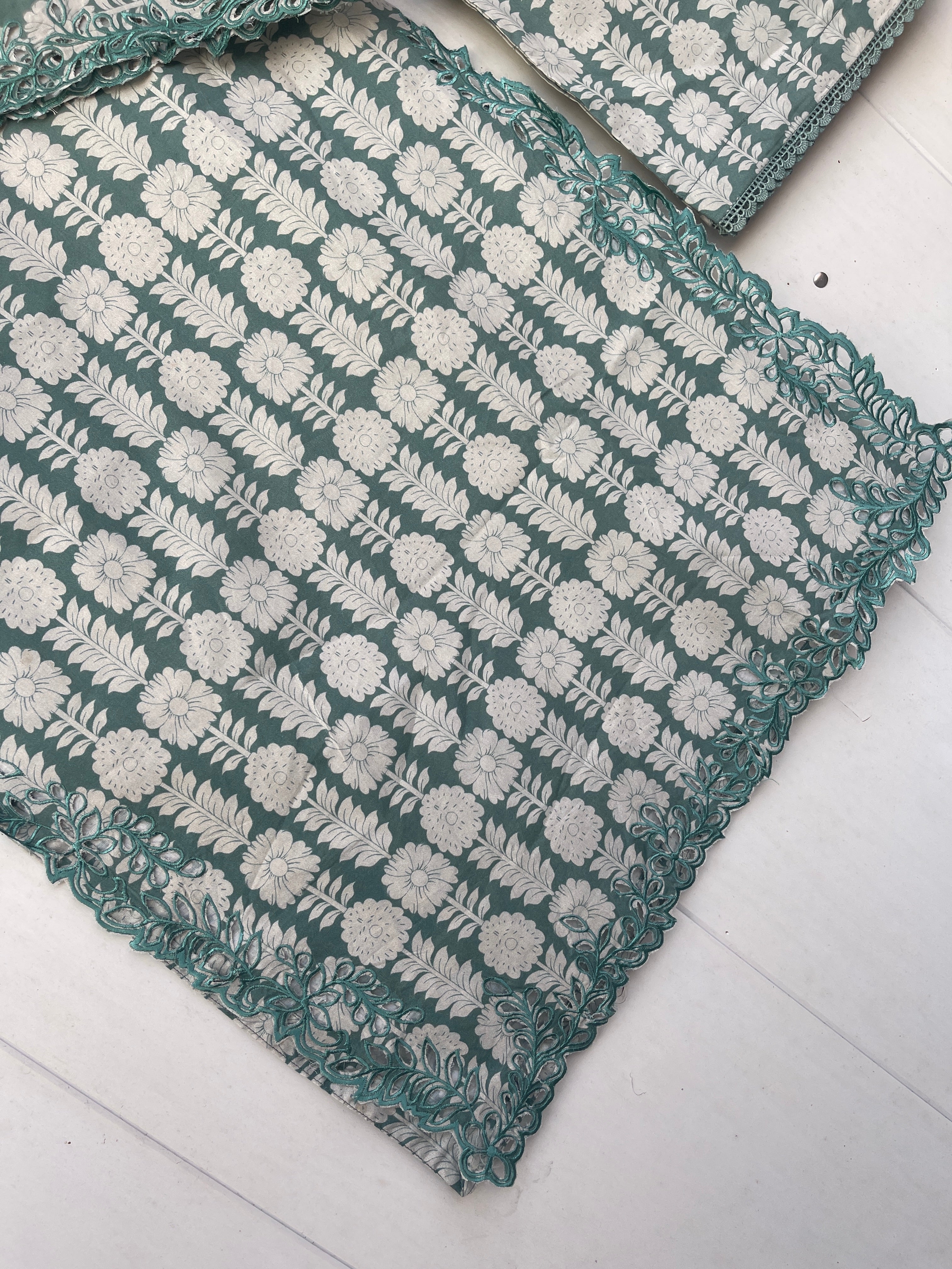 Introducing the KIRAN 3pc lawn collection, featuring fine quality lawn fabric and a laser cut embryo design on the sleeves. Complete your look with a long printed lawn dupatta and a beautifully stitched lawn trouser. Delicate laces adorn the edges for an added touch of elegance. Elevate your wardrobe with this must-have collection.