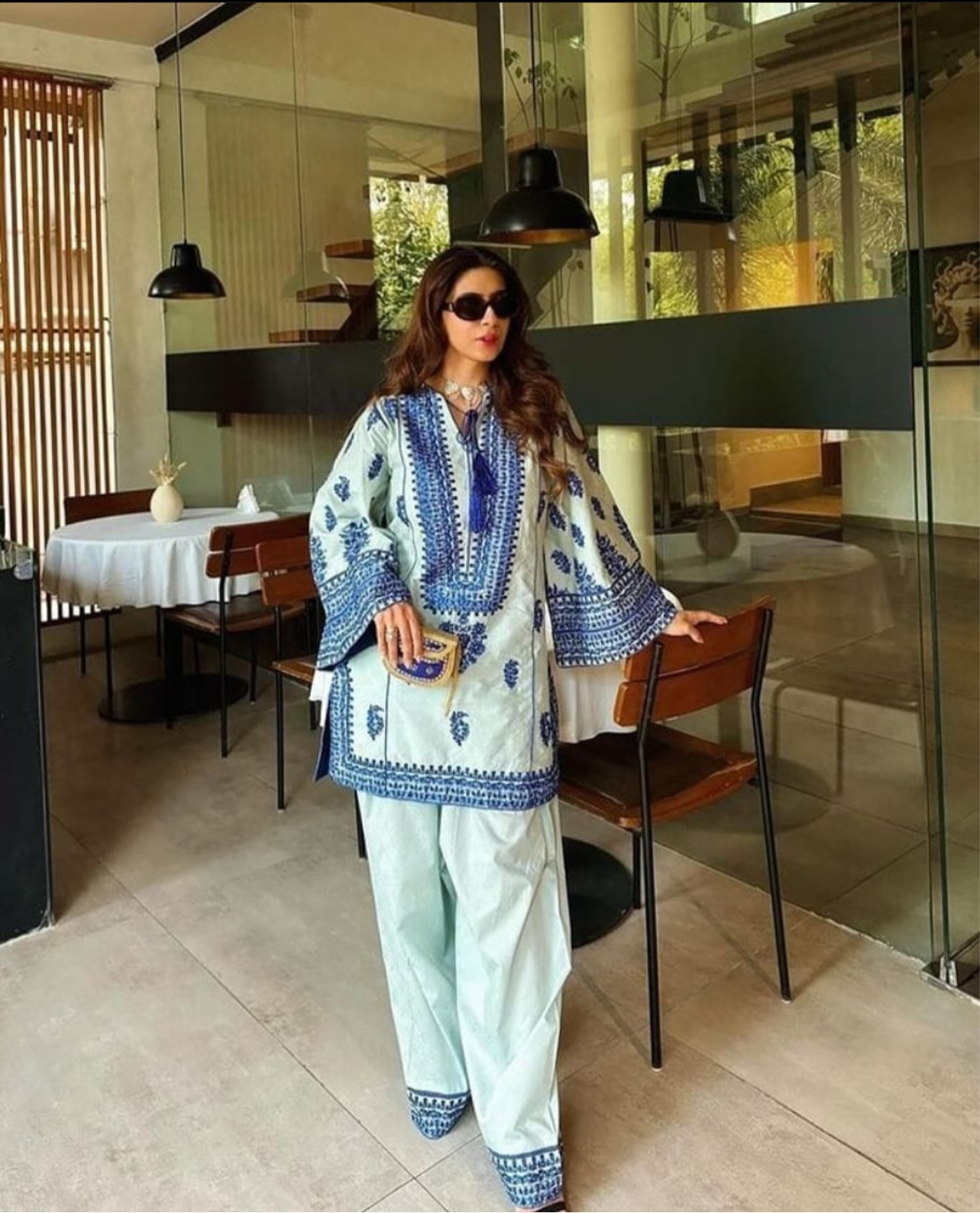 Elevate your wardrobe with our Luxury shalwar dress. This elegant ensemble features an embroidered farshi shalwar and shirt, embellished with intricate details. Made from luxurious lawn fabric, it offers a comfortable and stylish fit. The bell bottom sleeves add a touch of flair to this timeless piece.