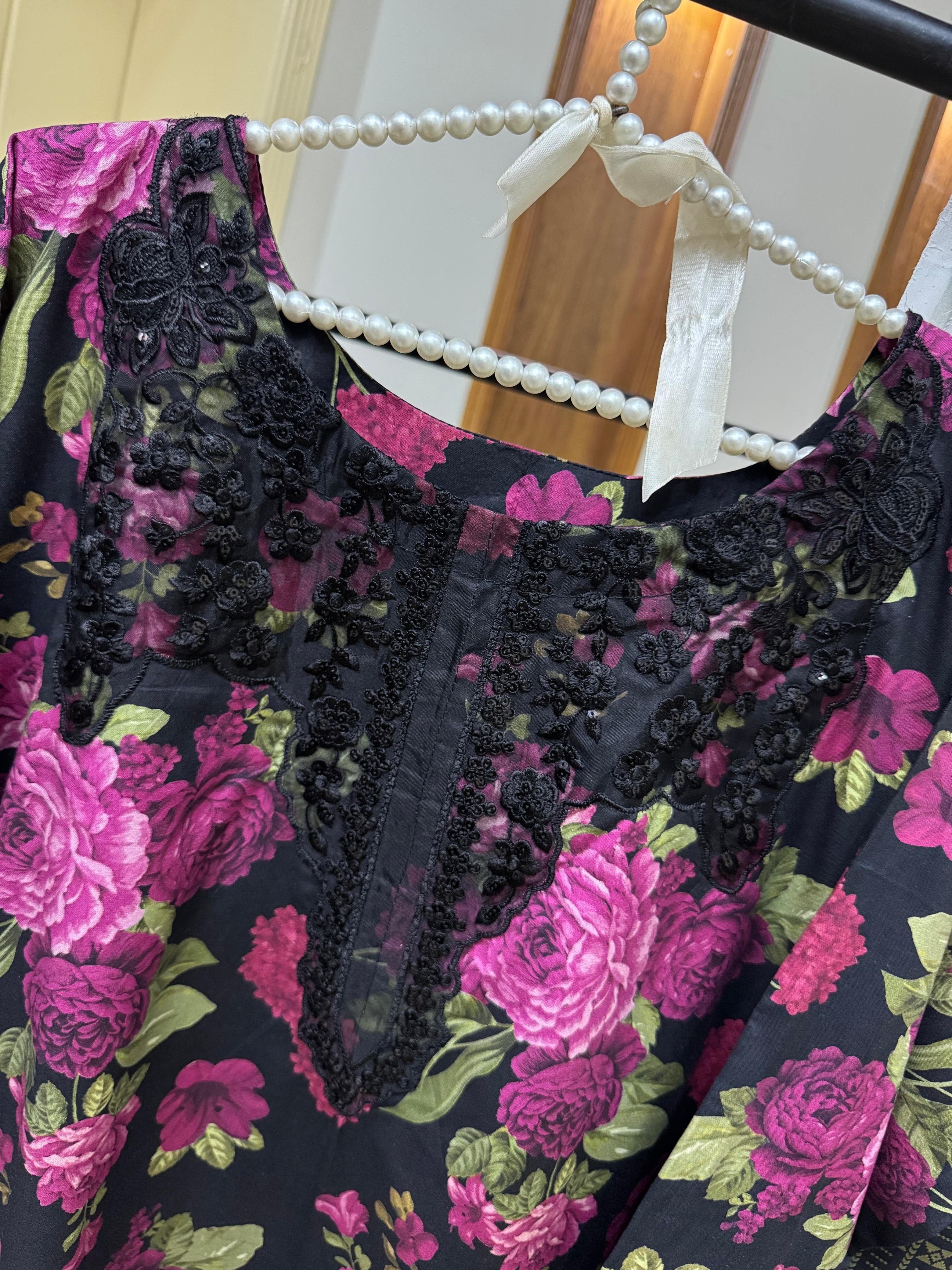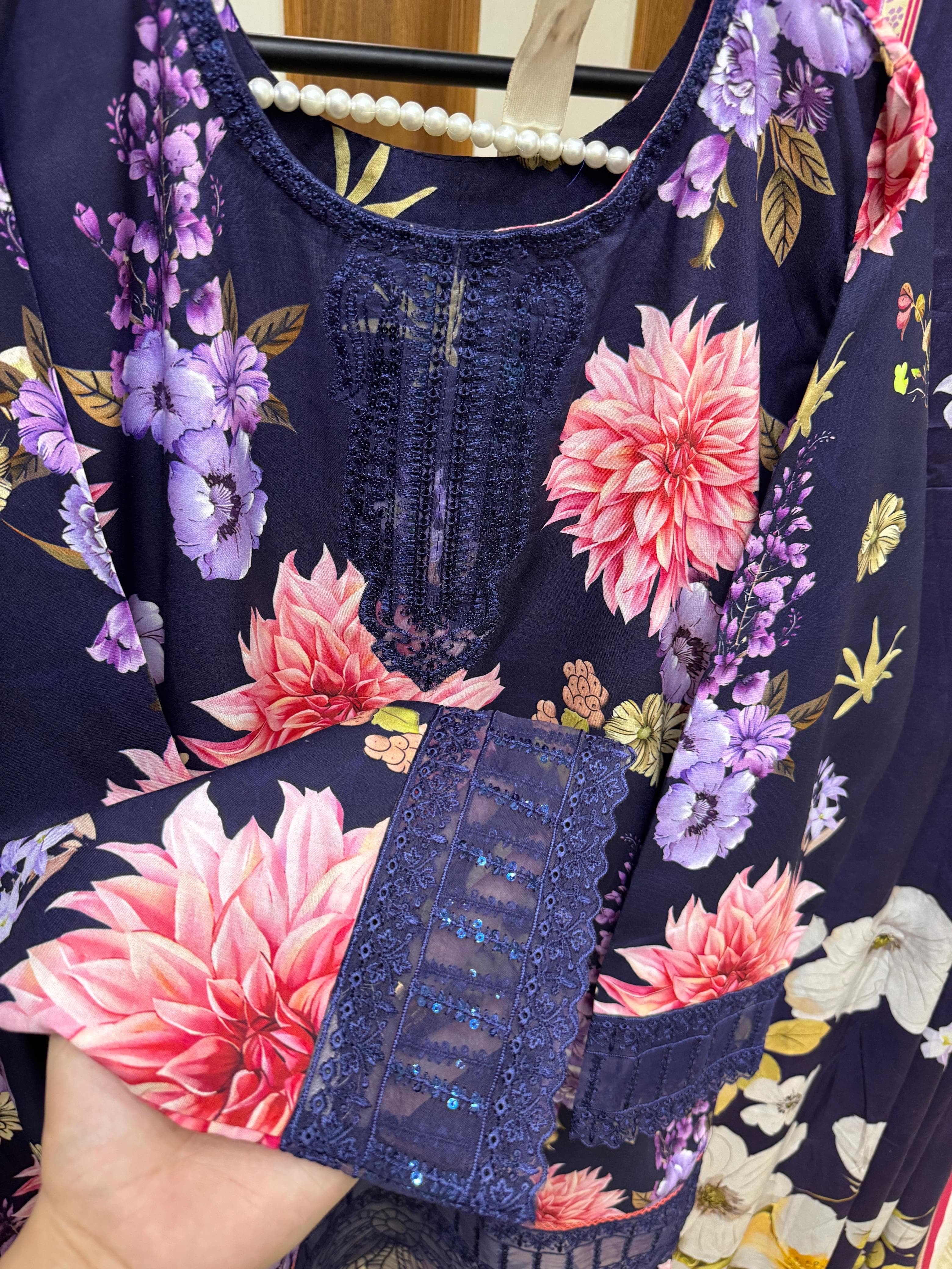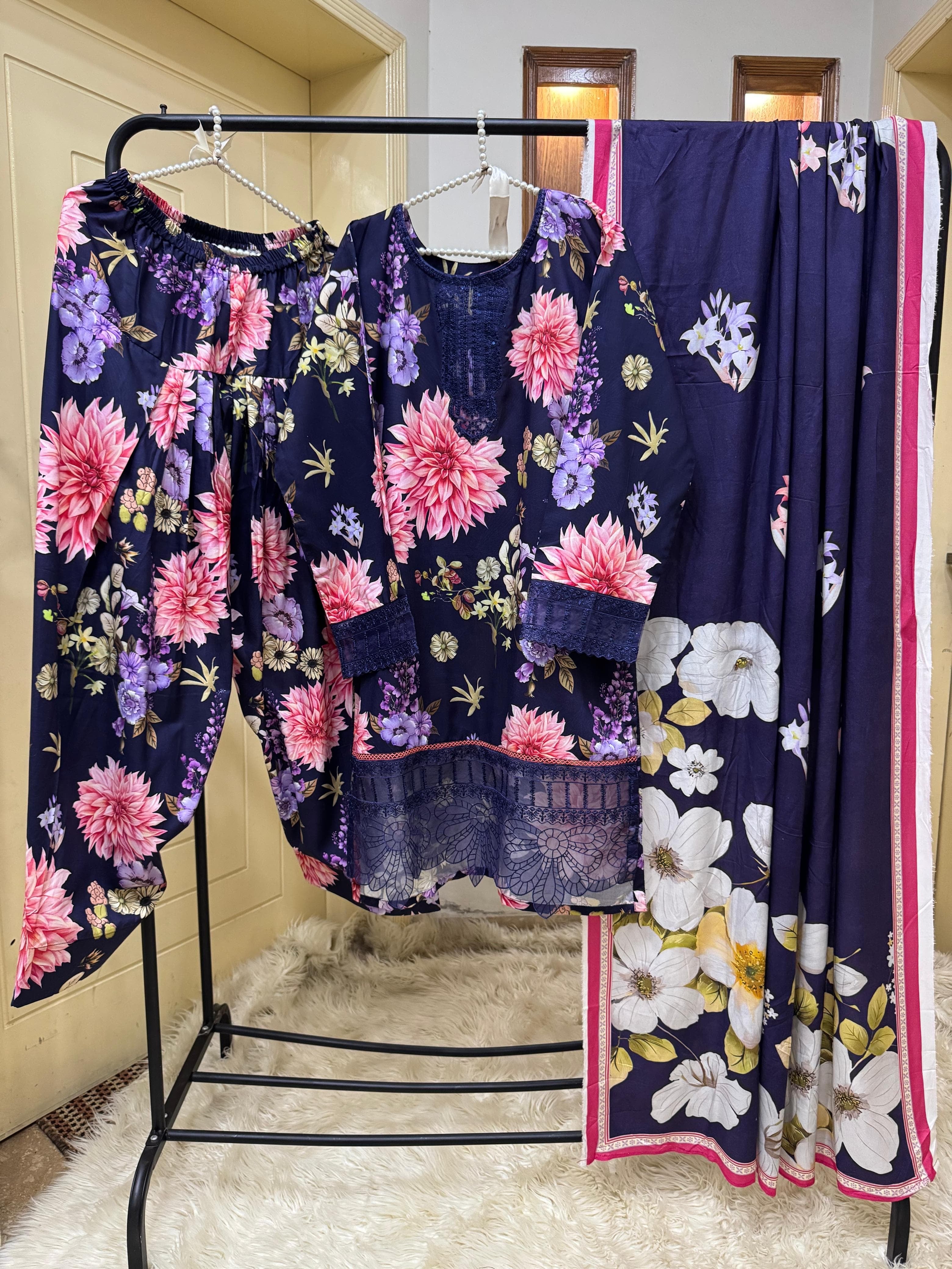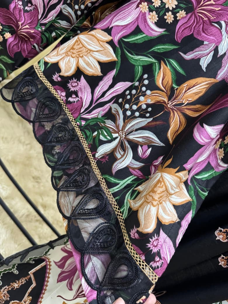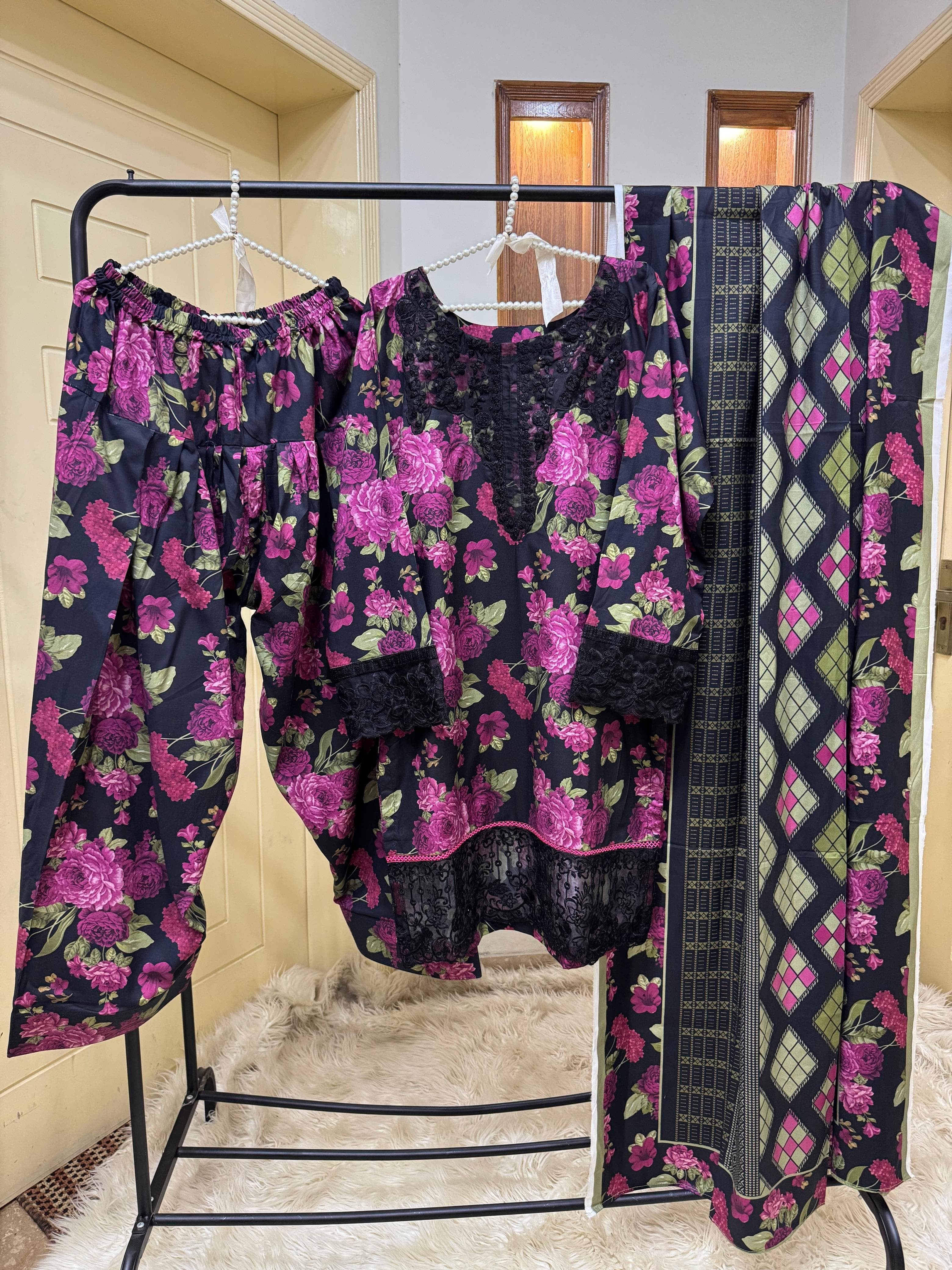 Upgrade your winter wardrobe with the MUSHK 3PC collection. Made from quality linen fabric, each piece is delicately embroidered for a touch of elegance. The neckline and sleeves are adorned with beautiful embroidery, while the farshi shalwar adds a unique twist. Complete the look with the digitally printed shawl for a stylish and cozy ensemble.
