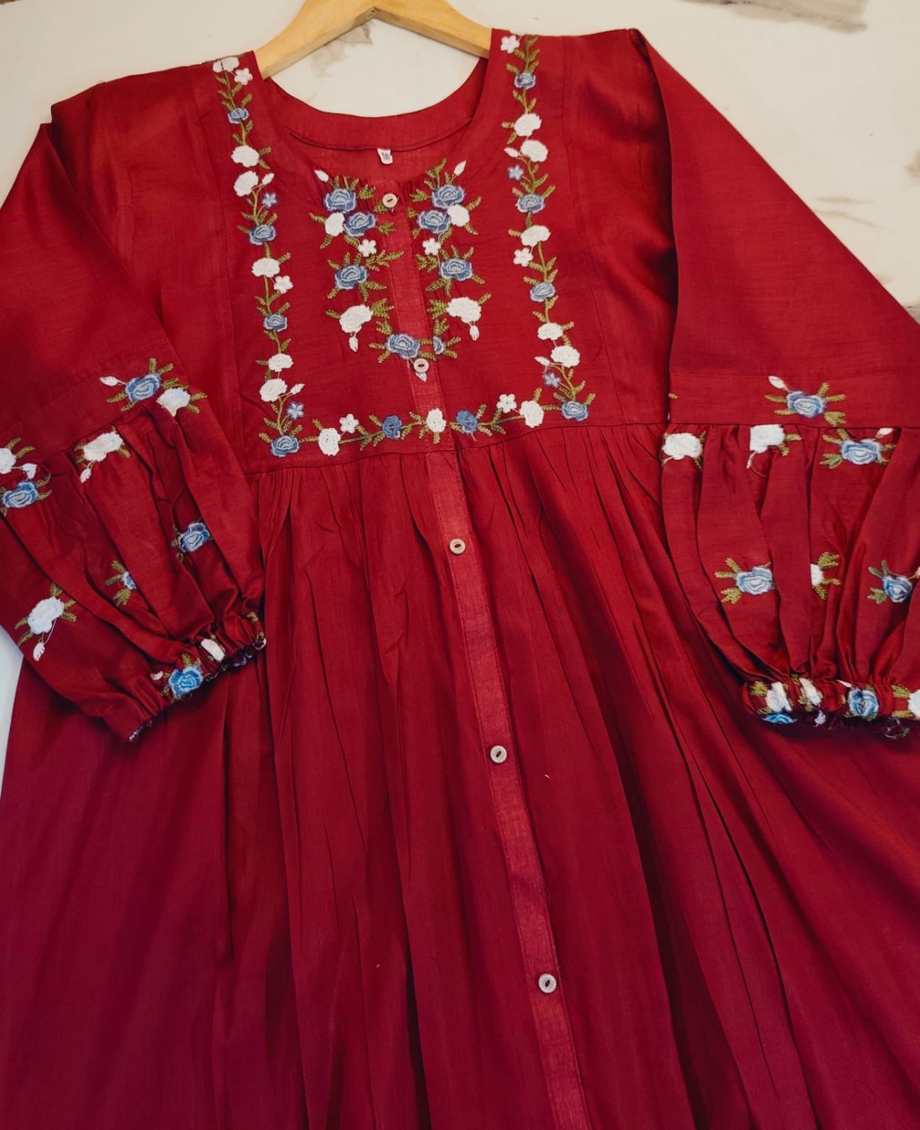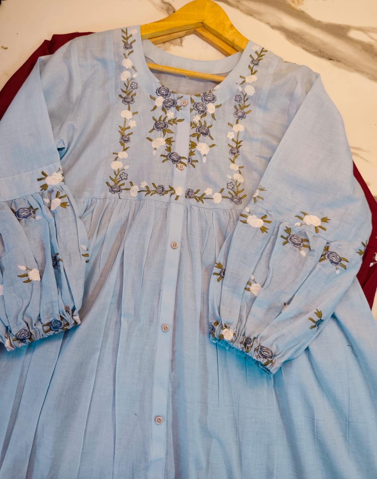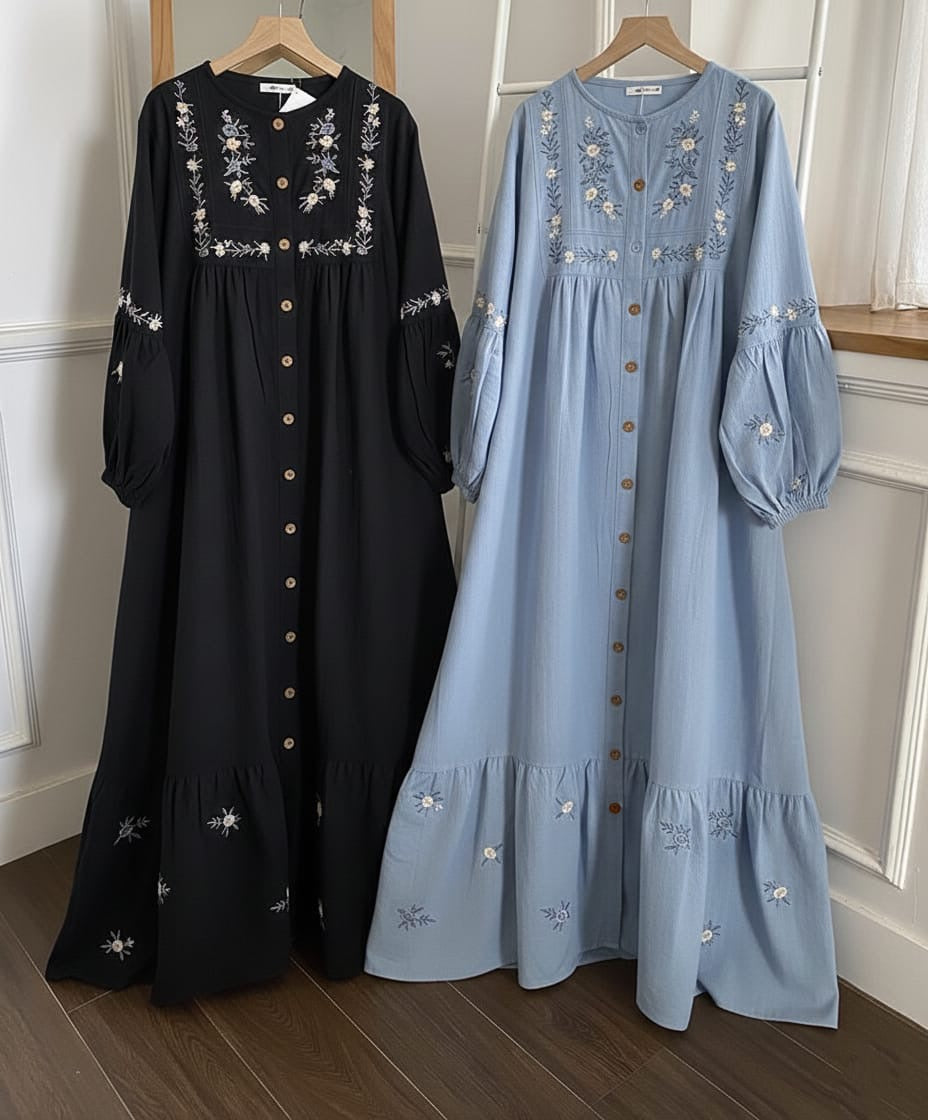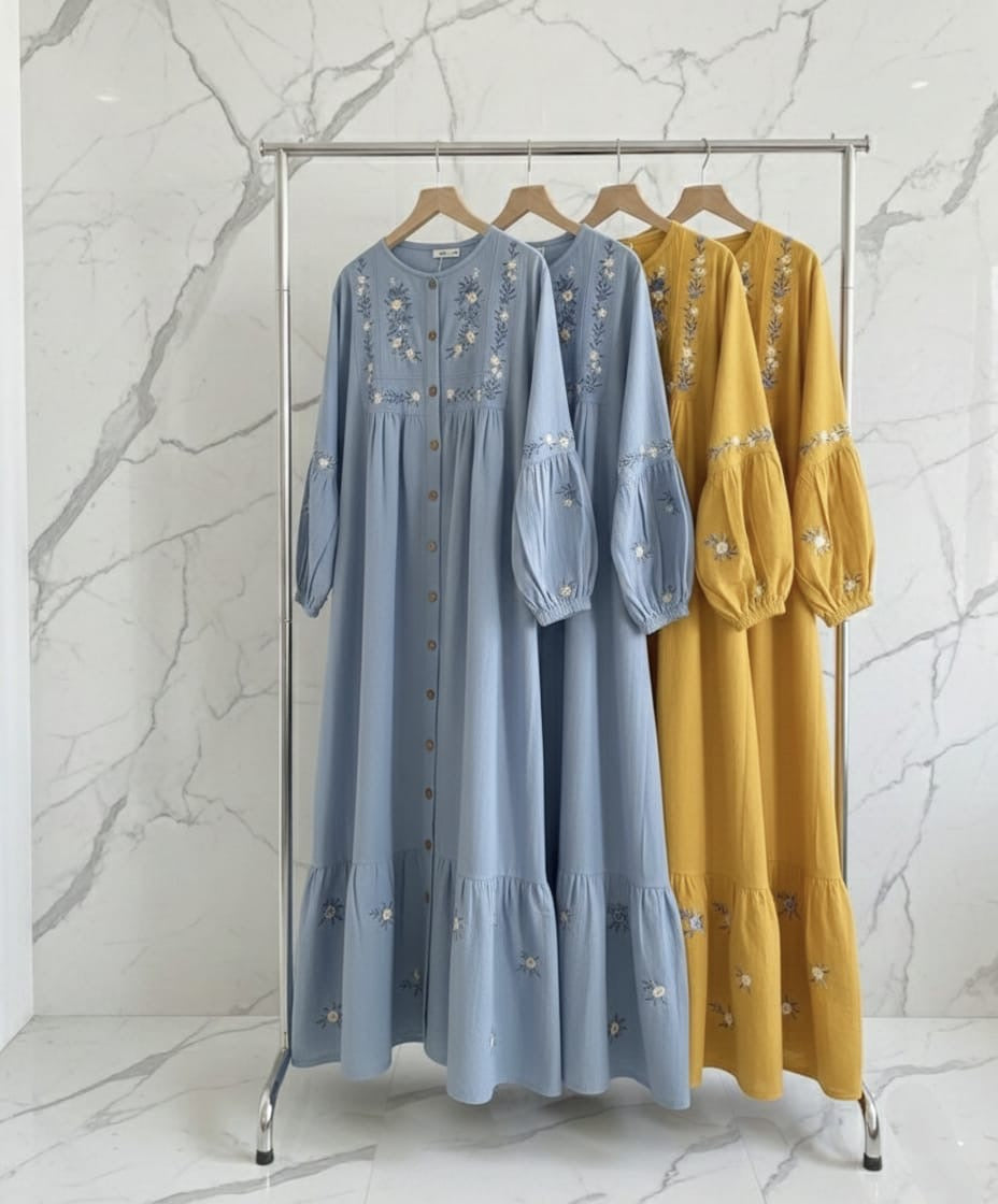 The SHEEN LAWN MAXI DRESS features a long flair design crafted from pure lawn fabric, ensuring breathability and comfort. It is adorned with detailed daman thread and body thread embroidery, enhancing its aesthetic appeal. The accompanying plain trouser complements the overall outfit, while the length of 48-49 inches provides a flattering silhouette.